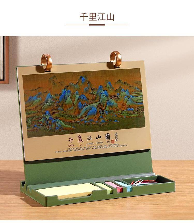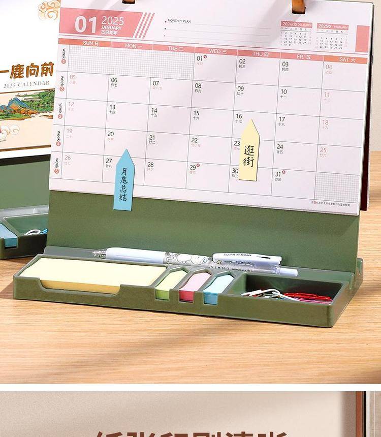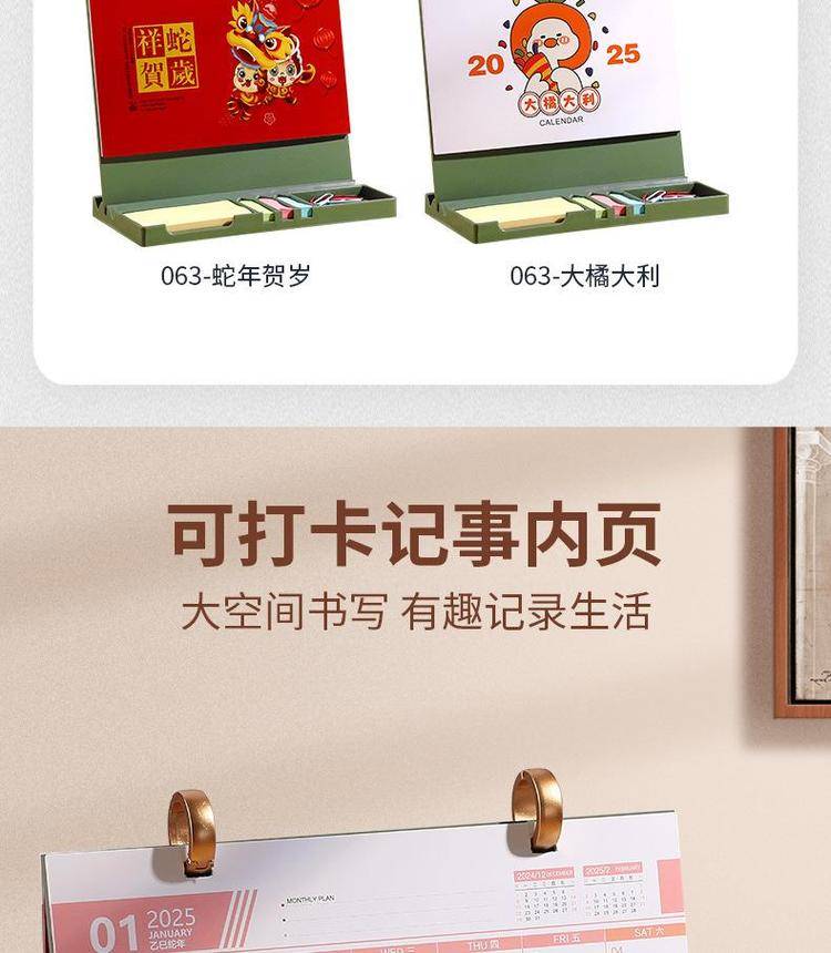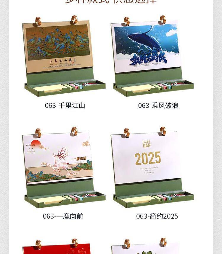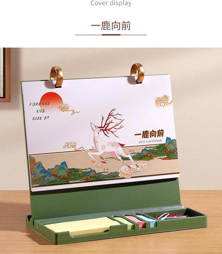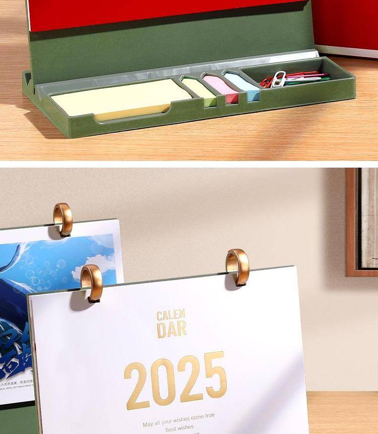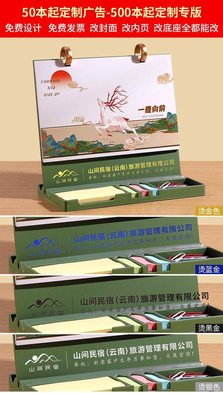 2025年时光逆流日历厂家台历定制中号收纳多功能手机架烫金雕刻