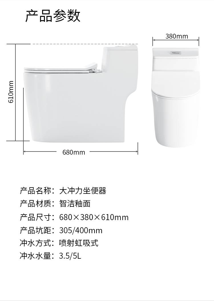 马桶坐便器家用抽水大口径管道防臭超漩节水虹吸式座便小户型坐厕