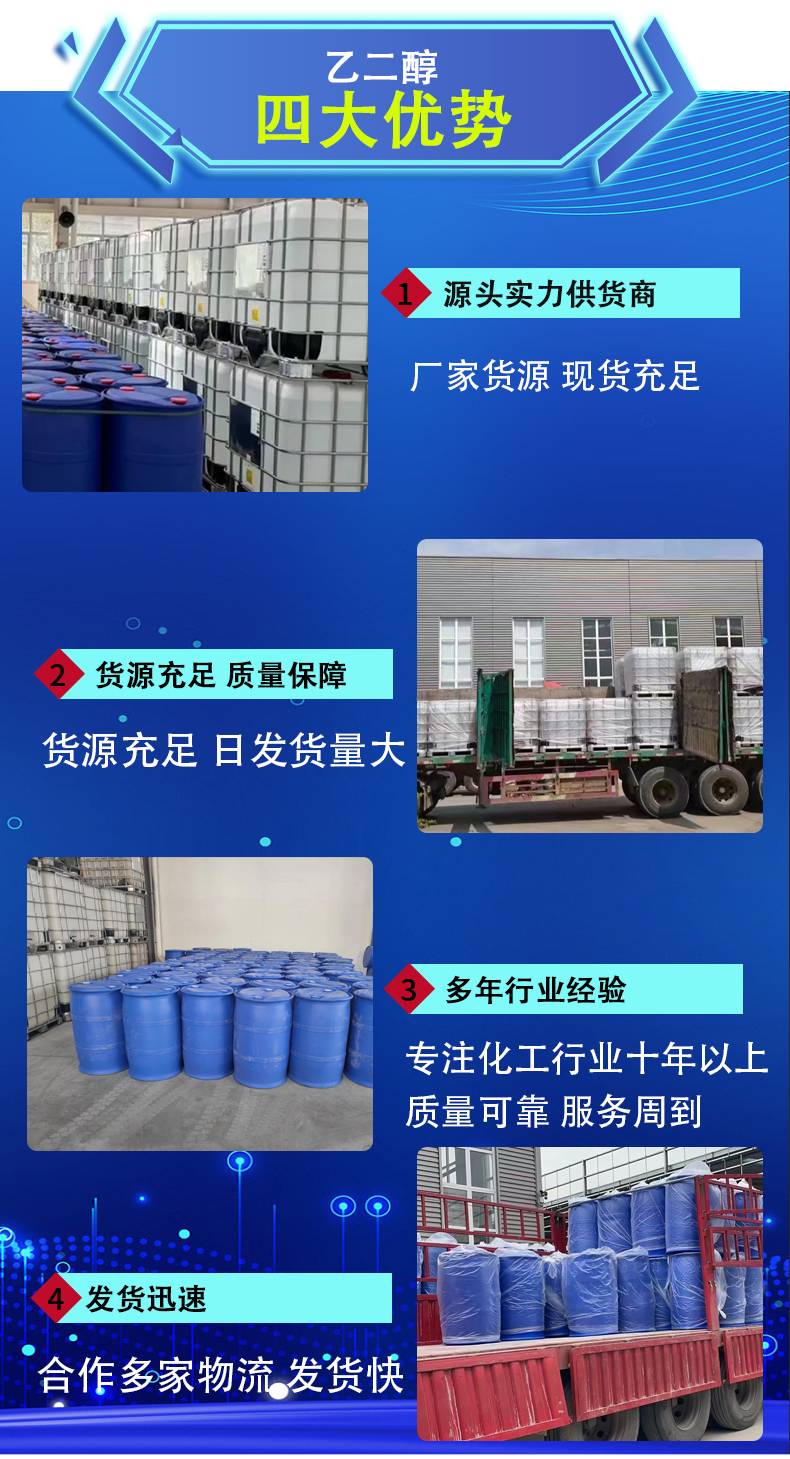 2222工业级含量99.9% 乙二醇 甘醇MEG 有机溶剂 冷却剂和防冻剂化工原料