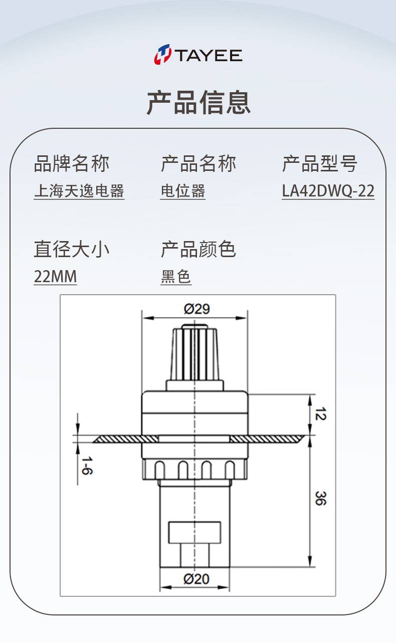 LA42DWQ-22/1K/2K/5K/10K调速器原装正品上 海天逸TAYEE22mm电位器