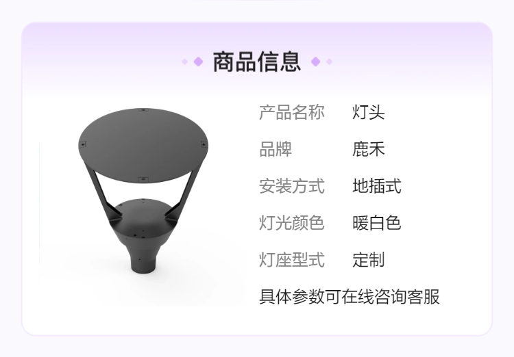 鹿禾地插式暖白光灯头 定制灯座 长寿命3000K色温