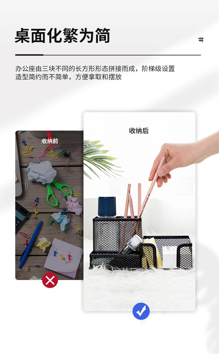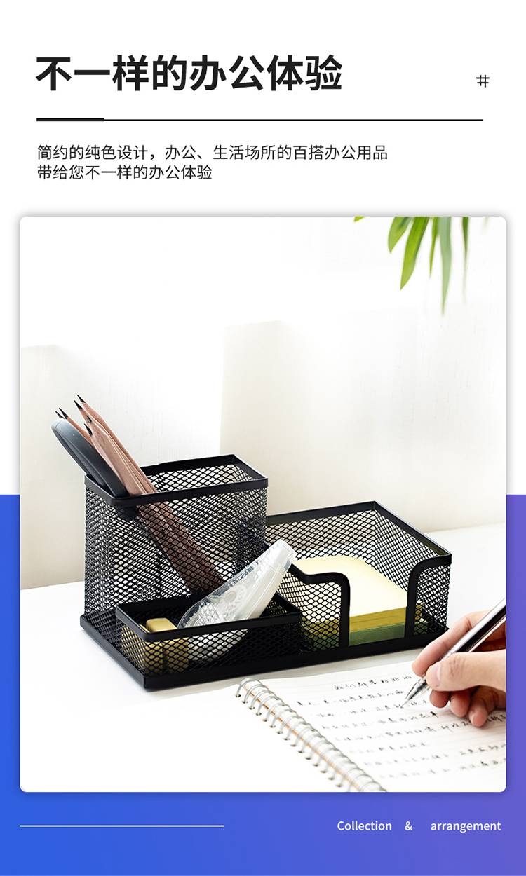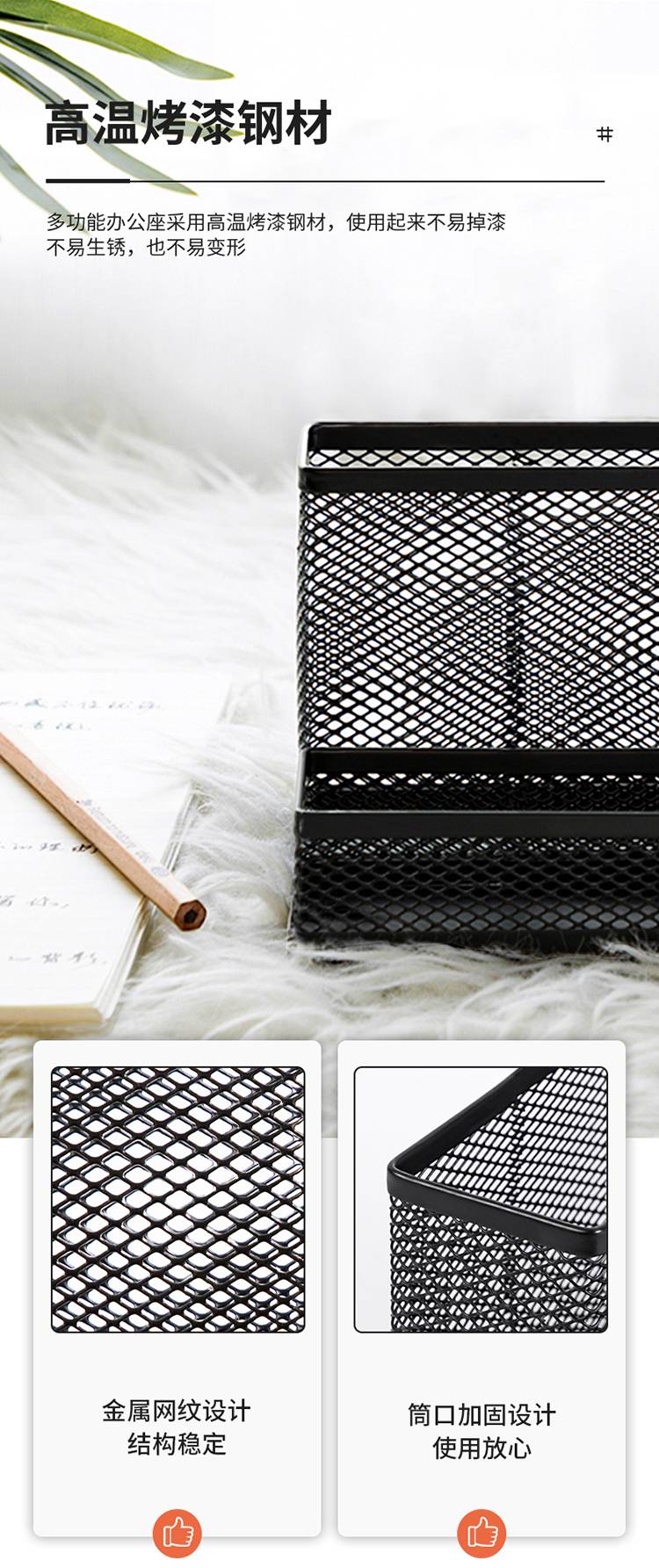 得力(deli)9175 金属网纹笔筒 多功能三格桌面收纳 办公用品 黑色