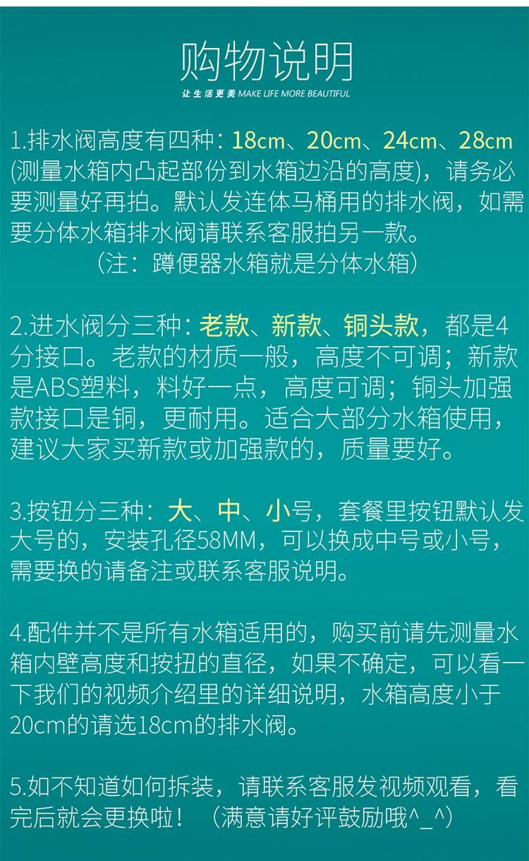 分体抽水马桶水箱配件挂式水箱排水阀进水阀双按按钮坐蹲便器配件