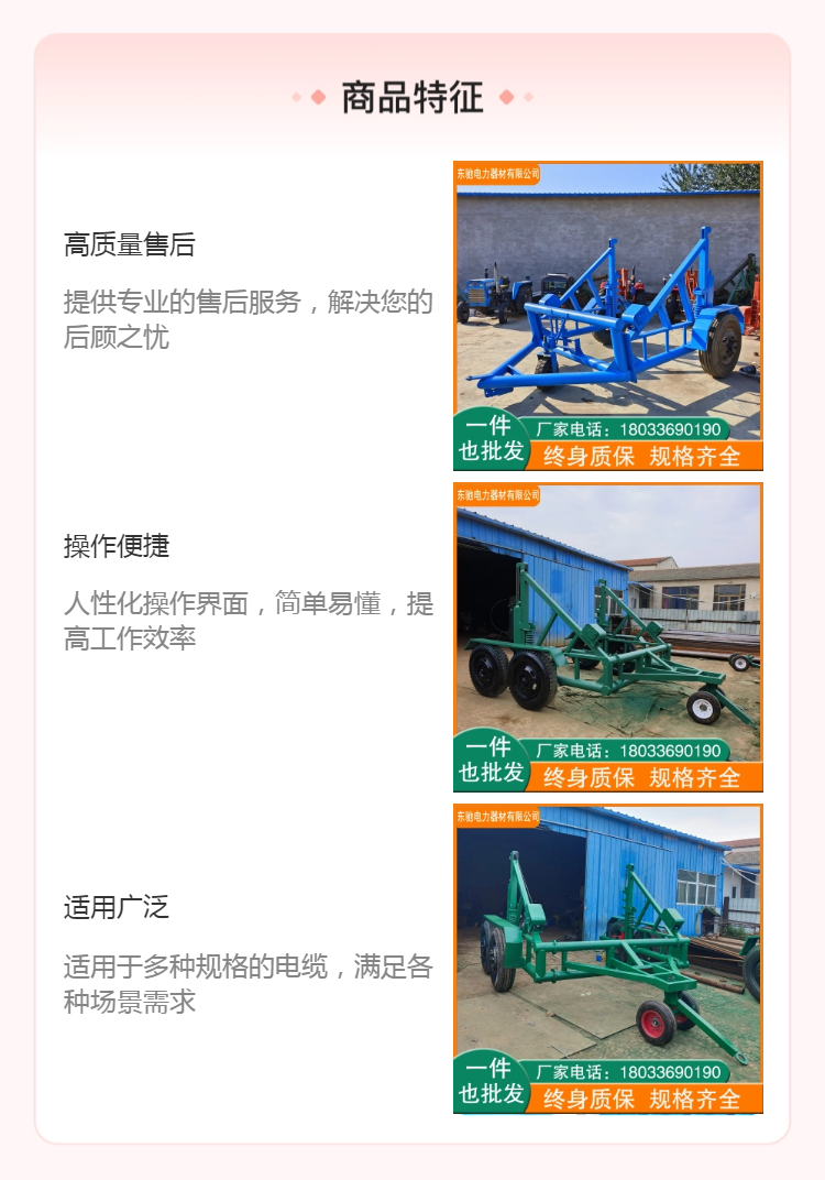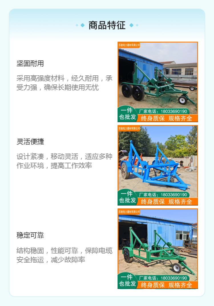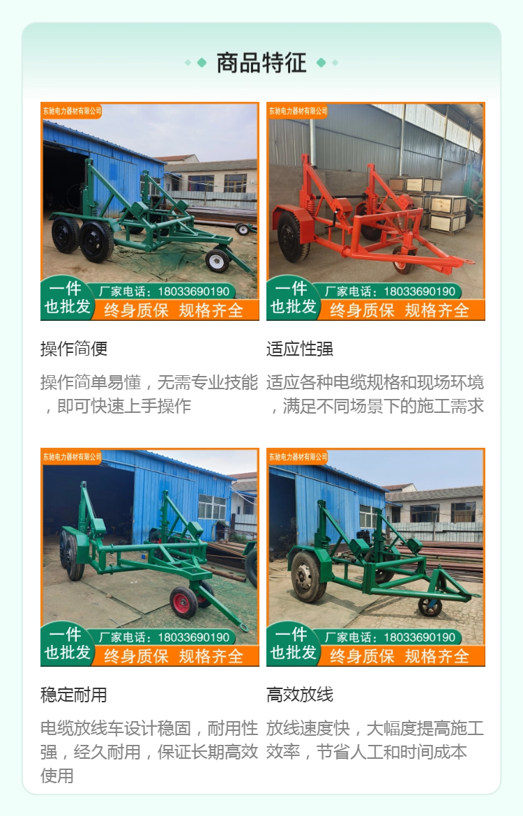 电力电信施工中装卸运输和布放大型电缆线轴必备的电缆线盘拖车