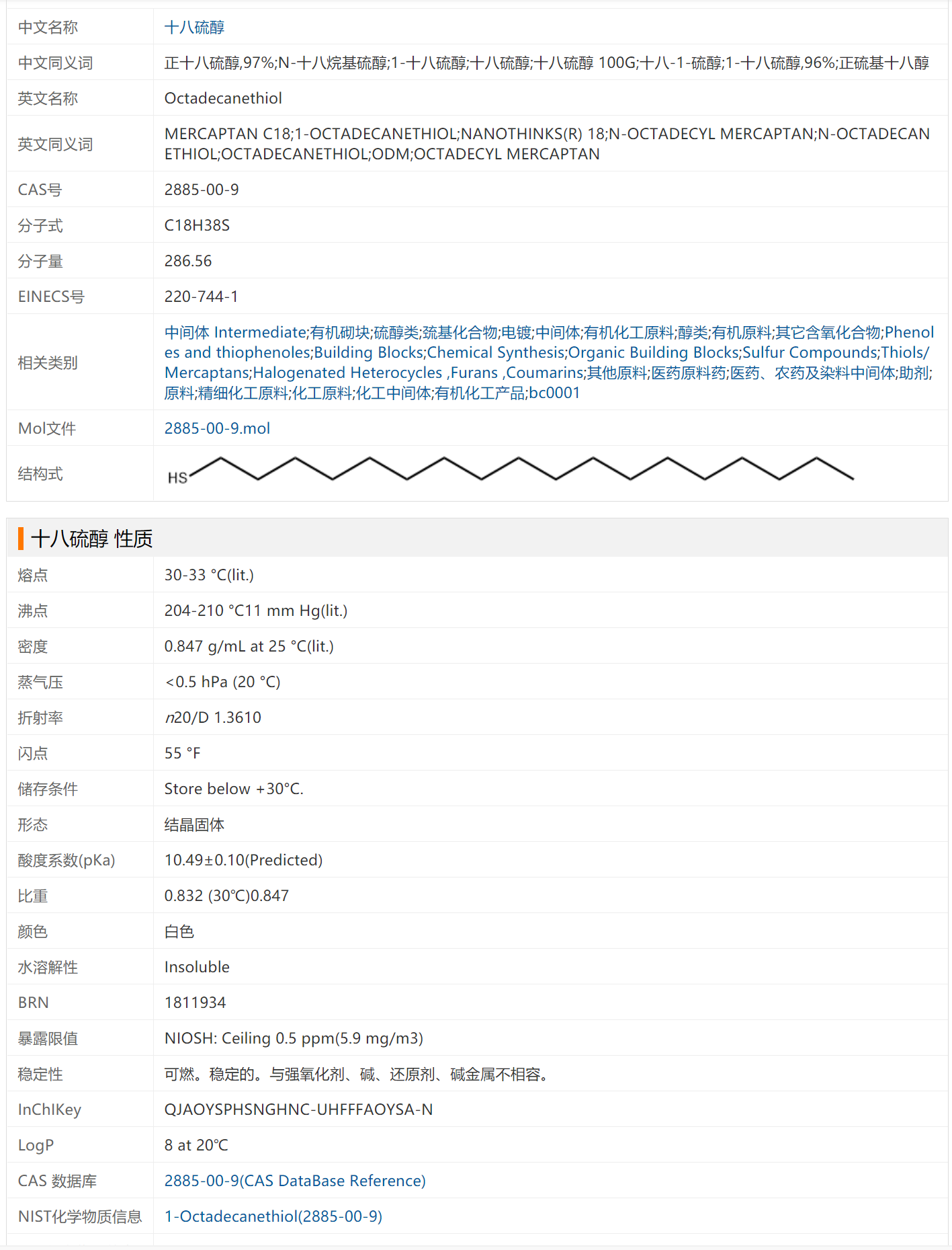 十八硫醇 含量99% 研究化学品 醇类有机物 2885-00-9 包装180kg桶
