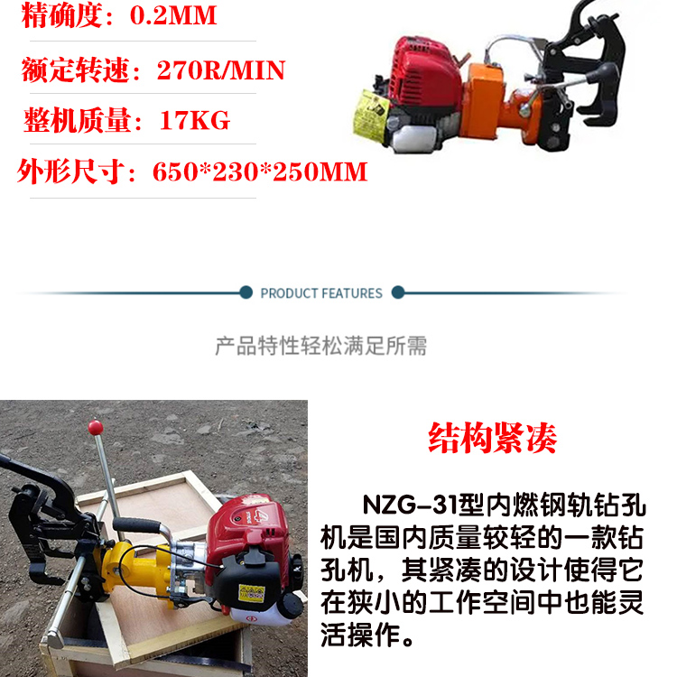 内燃钢轨钻孔机 铁路打孔机 汽油空心冲孔机 重量轻体积小 操作方便