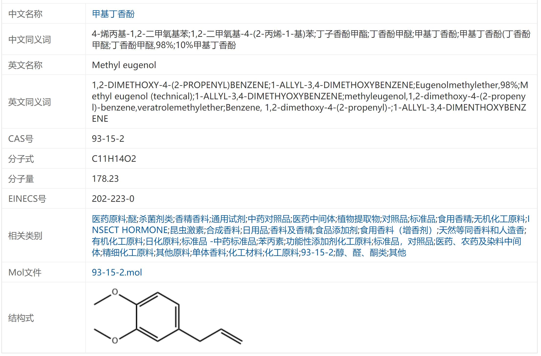 甲基丁香酚 93-15-2 香气提调剂 辛香修饰剂 酚类化合物丁香酚