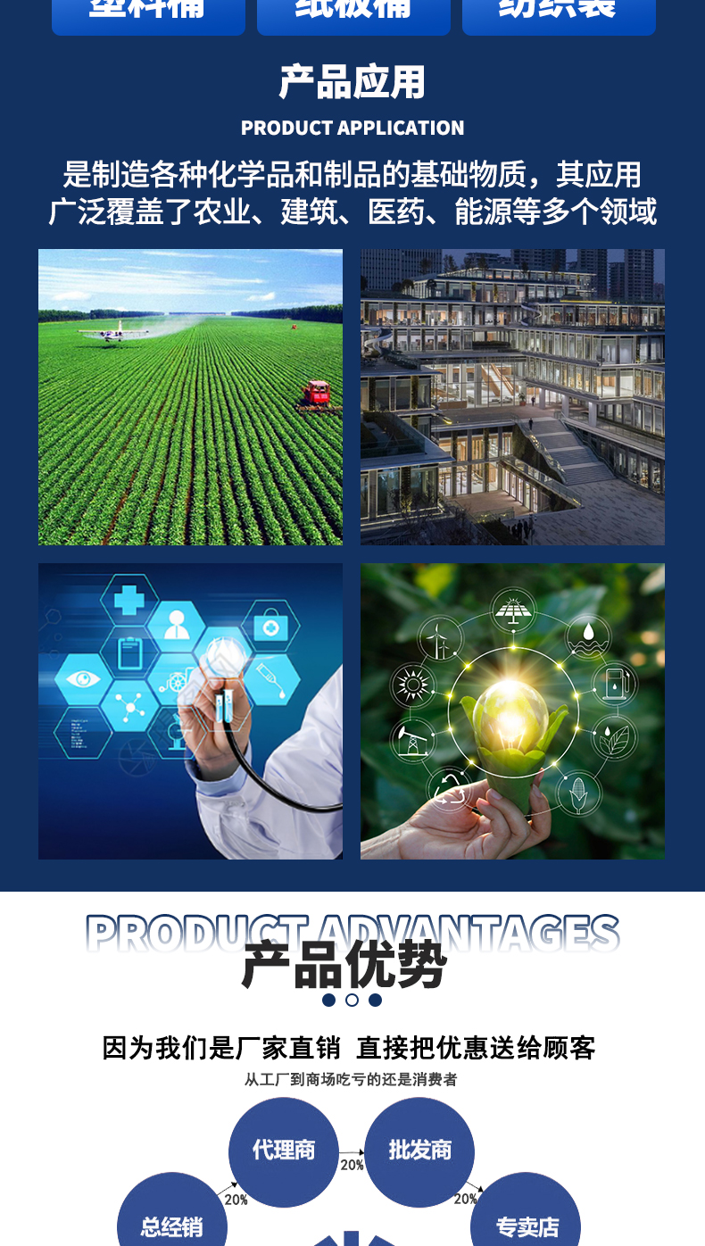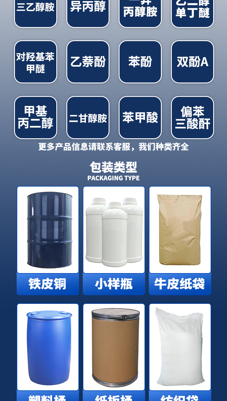 主要用于合成聚酯纤维、树脂、薄膜、聚酯漆及工程塑料等
