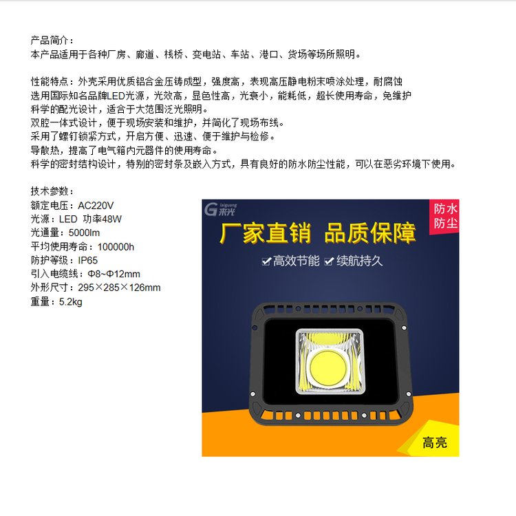 本产品适用于各种厂房、廊道、栈桥、变电站、车站、港口、货场等场所照明