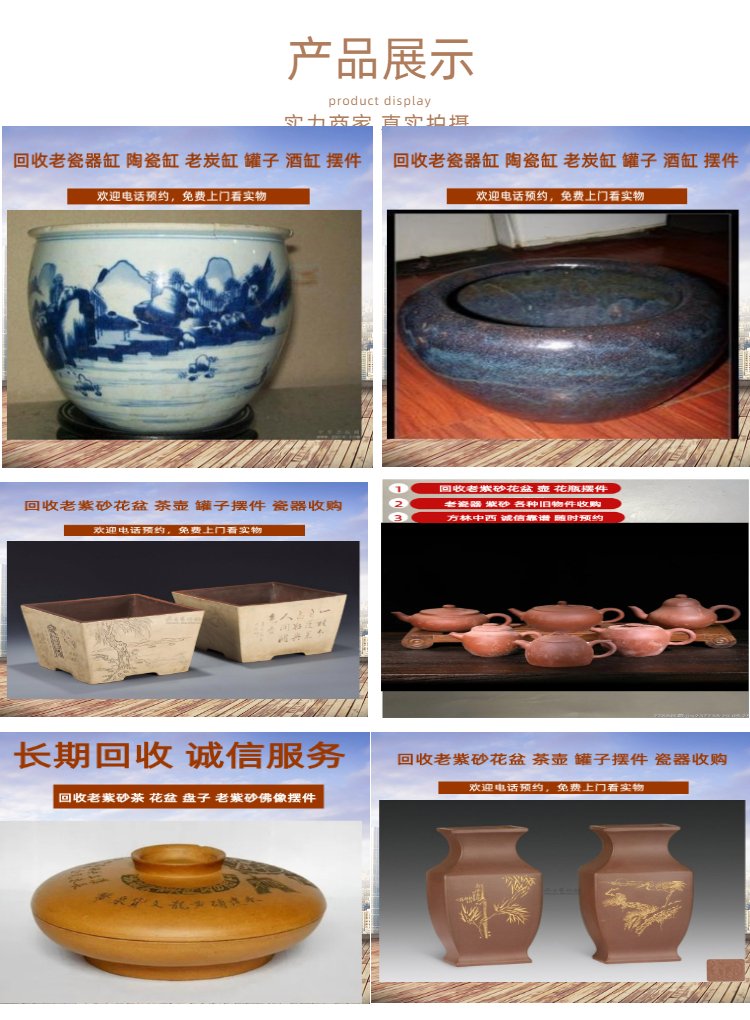各种老瓷器回收旧紫砂壶 花盆 老砚台木头笔筒方林当天安排