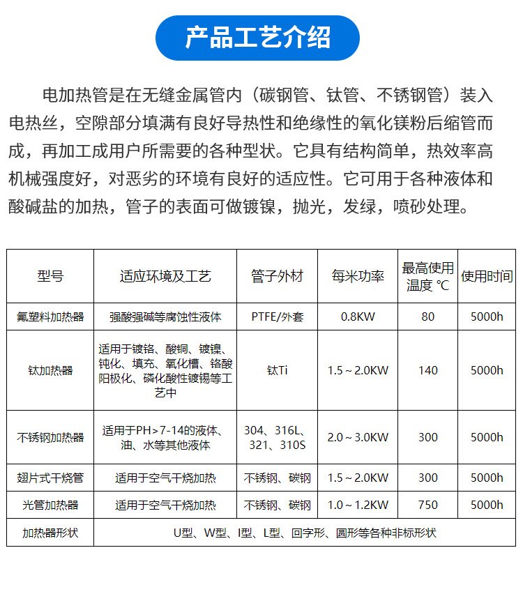 宏泰 液体加热管 U型加热设备 对各类产品进行加热的电热元件