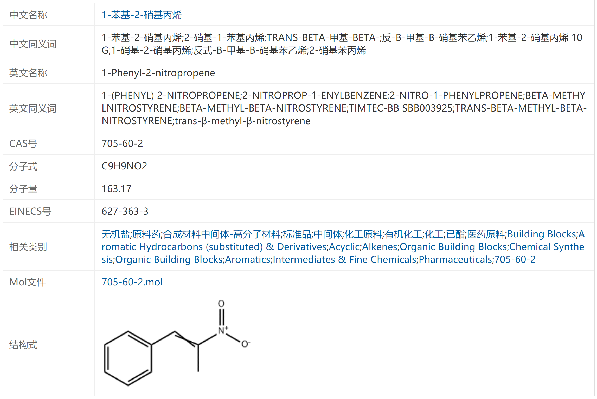 1-苯基-2-硝基丙烯 705-60-2 含量99% 烯烃类衍生物 有机中间体材料