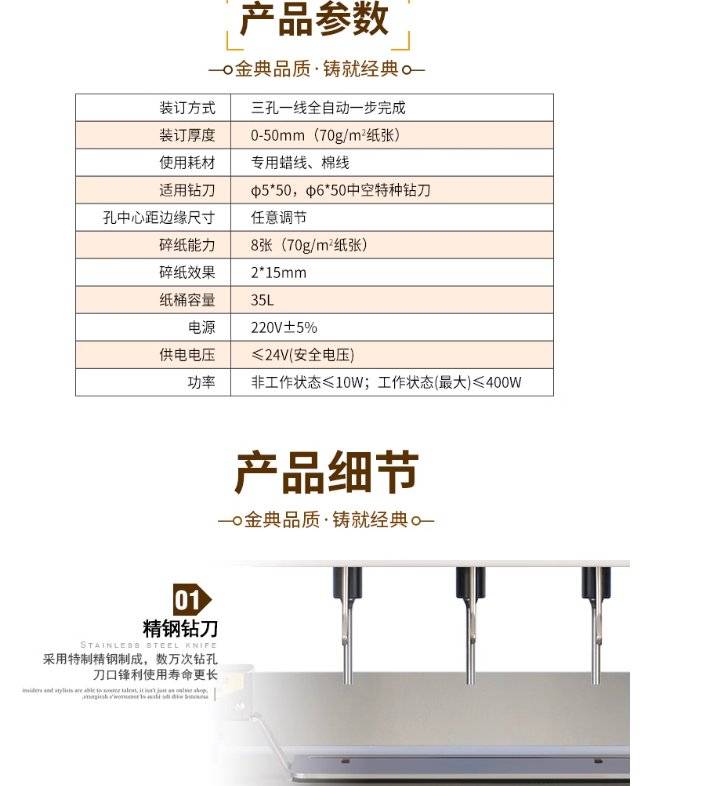 金典GD-N9610全自动三孔线装机打孔穿线式档案装订机