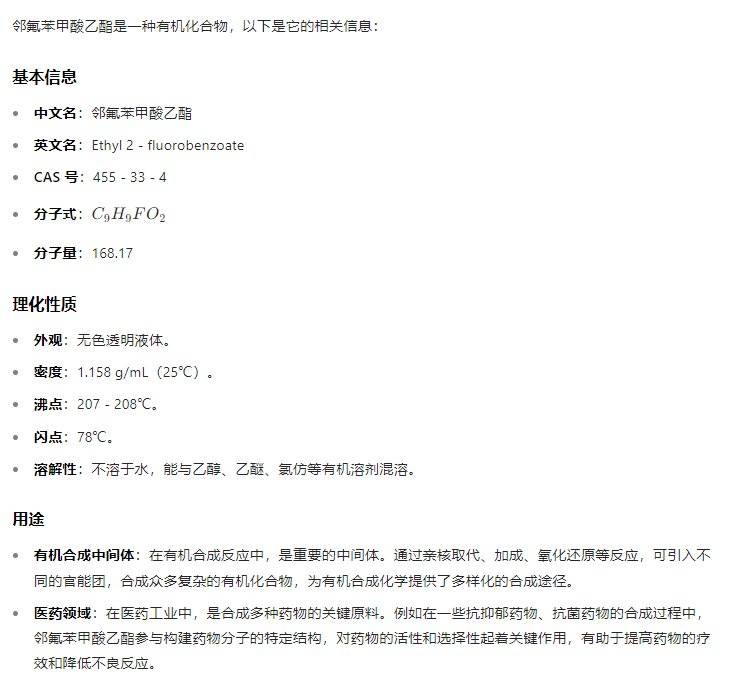 邻氟苯甲酸乙酯 2-氟苯甲酸乙酯 酯类化合物含量99 中间体 443-26-5