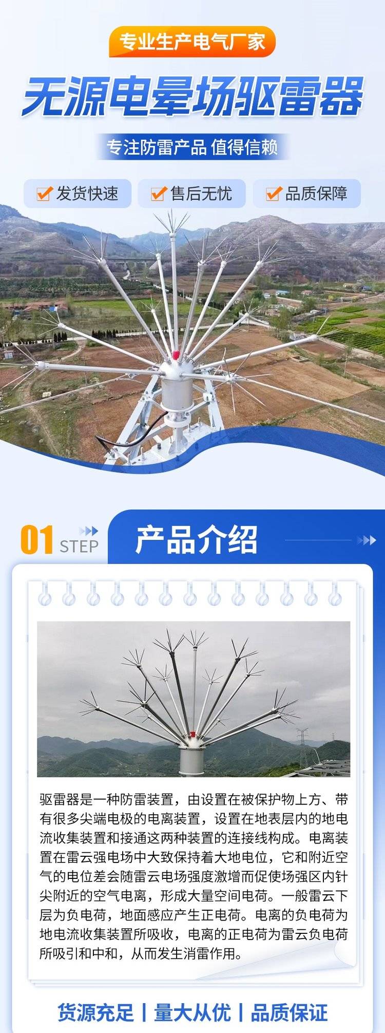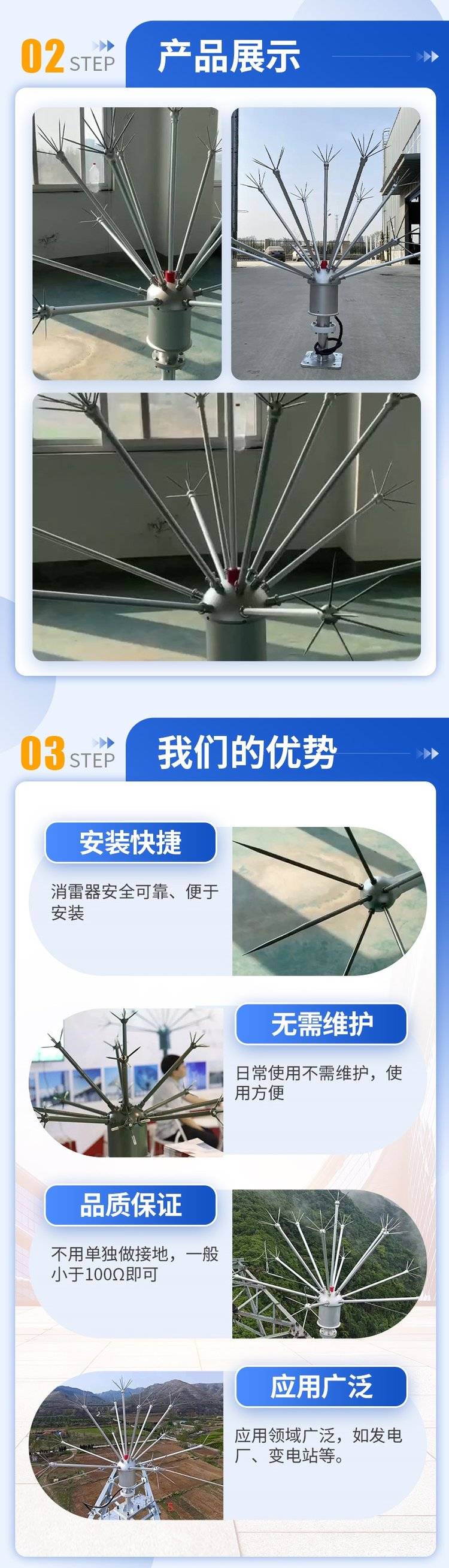 驱雷器变电站拒雷装置 无源电晕场驱雷 器 半导体多短针散雷装置