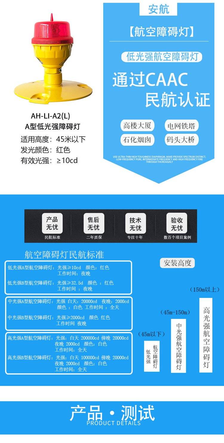 认证CAAC A型低光强航空障碍灯 高楼LED警示信号灯塔机警示灯