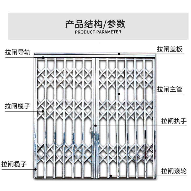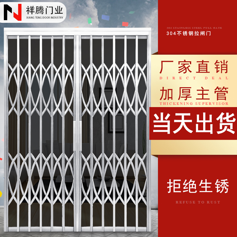 佛山不锈钢拉闸门伸缩折叠门推拉通风入户门拉闸防盗网阳台防护栏