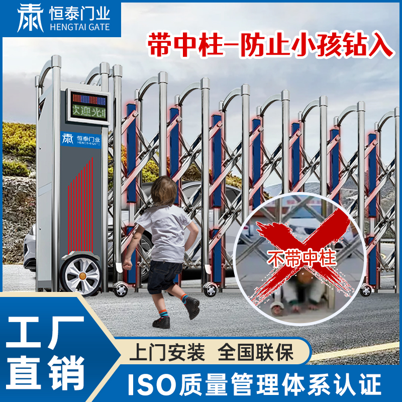 恒泰门业电动伸缩门304不锈钢工厂学校抗风封板大门自动铝合金门