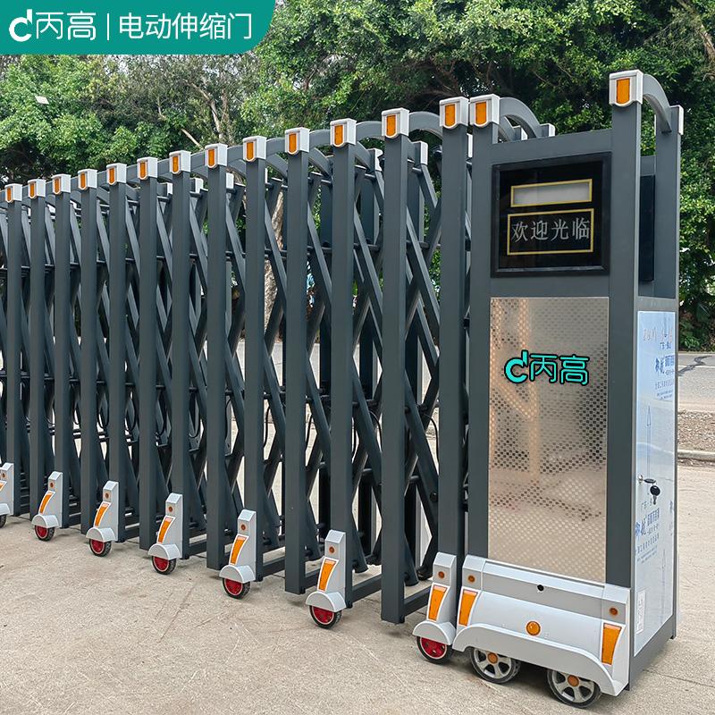 丙高铝合金电动伸缩门小区工厂围墙电动大门收缩门遥控自动拉伸门