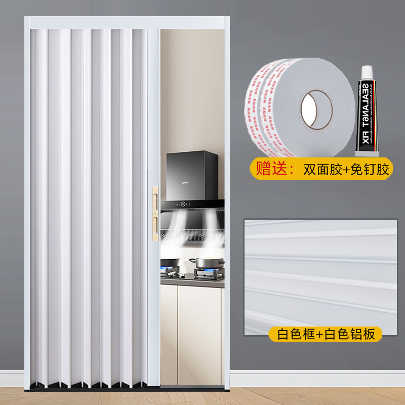 铝合金折叠门推拉门隐形卧室厨房卫生间阳台空调隔断伸缩简易移门(图1)