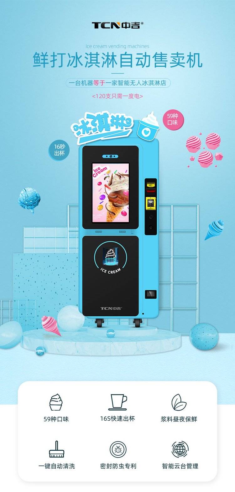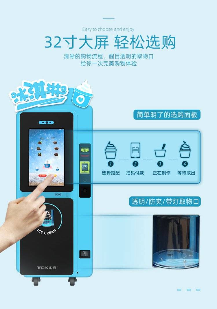 中吉全自动鲜打冰淇淋圣代自助售卖机冷冻款多功能可定制售货机