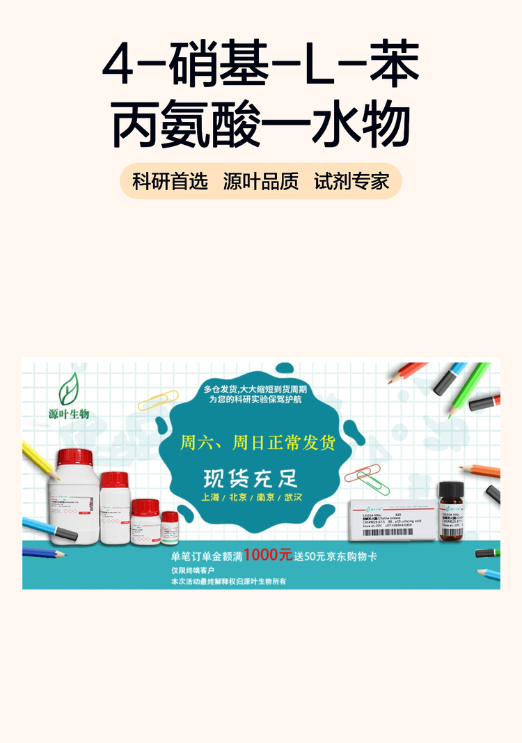 源叶生物4-硝基-L-苯丙氨酸一水物 微黄色粉末高纯度科研试剂