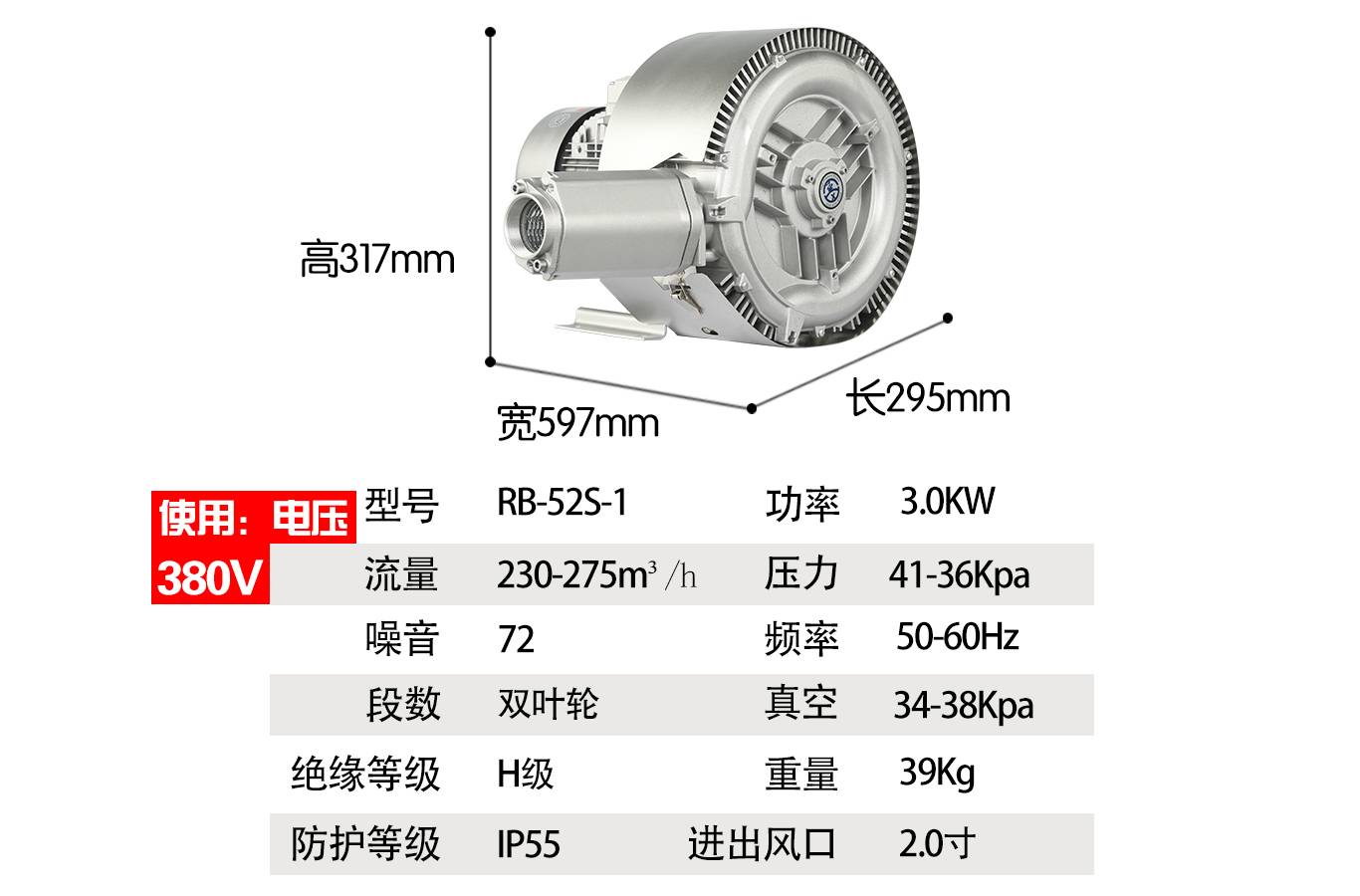鱼塘增氧鼓风机 水产养殖曝气高压风机 池塘打氧漩涡气泵