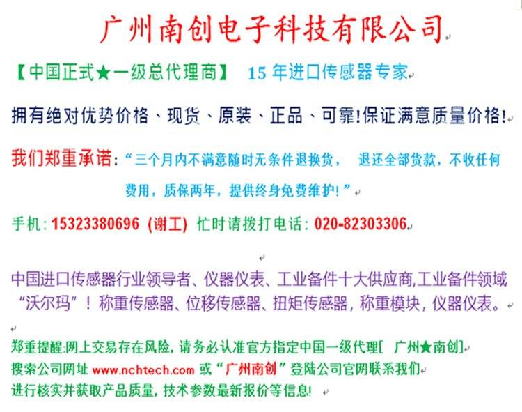 更多传感器信息可登录中国市场一级经销商官网:http://www.nchtech.com/hbm力传感器http://www.nchtech.com/hbmforce/hbm扭矩传感器http://www.nchtech.com/niujuhbm/tedea传感器http://www.nchtech.com/tedeahuntleigh/德国HBM传感器http://www.nchtech.com/HBM/自动配料系统http://www.nchsensor.com自动配料系统http://w