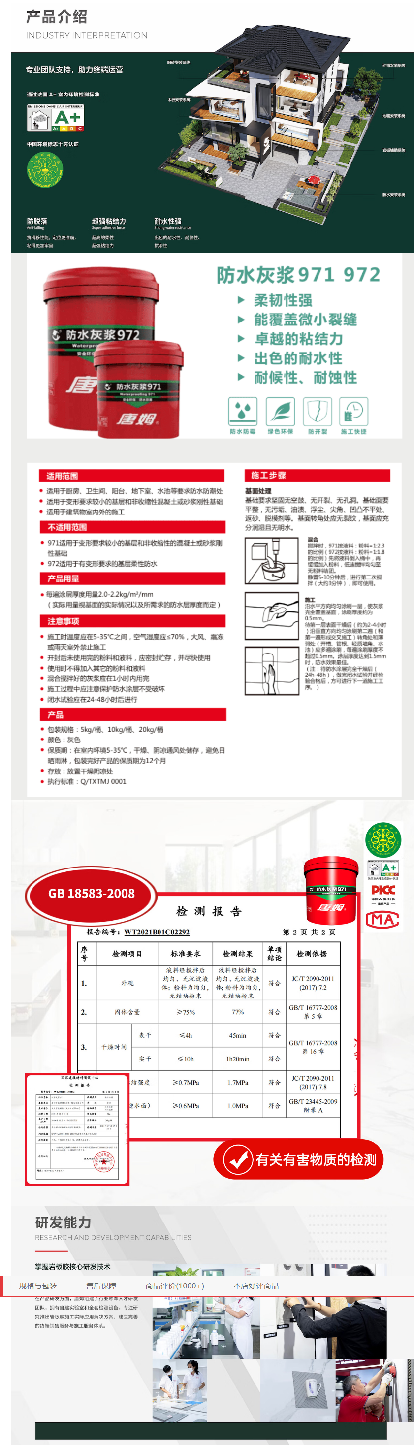 唐姆通用型防水涂料971卫生间地面墙面 灰色 20kg