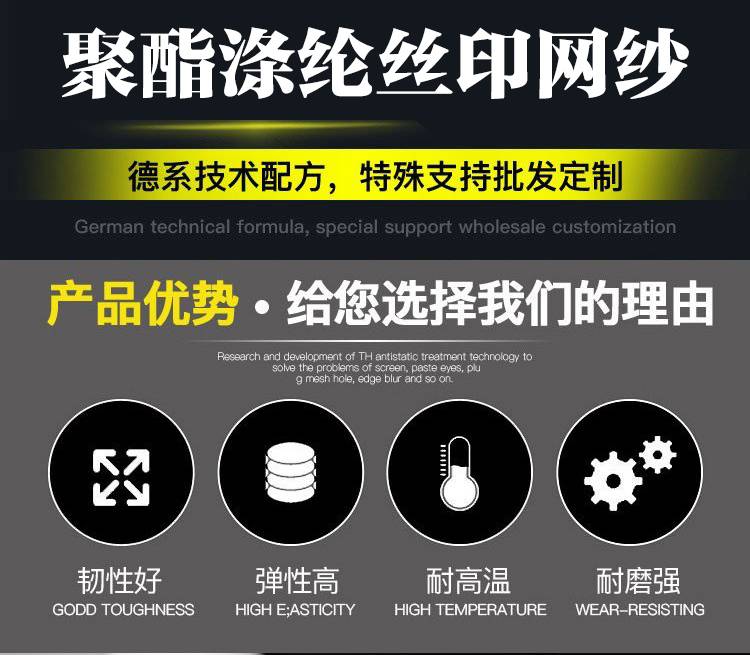 聚酯印刷耗材丝印网纱 拉力伸度小尺寸稳定性好 君诺
