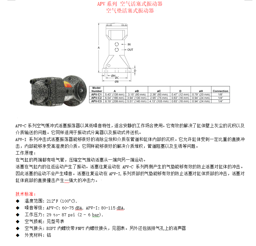 Dwyer德威尔 APV-C系列空气缓冲式活塞振动器