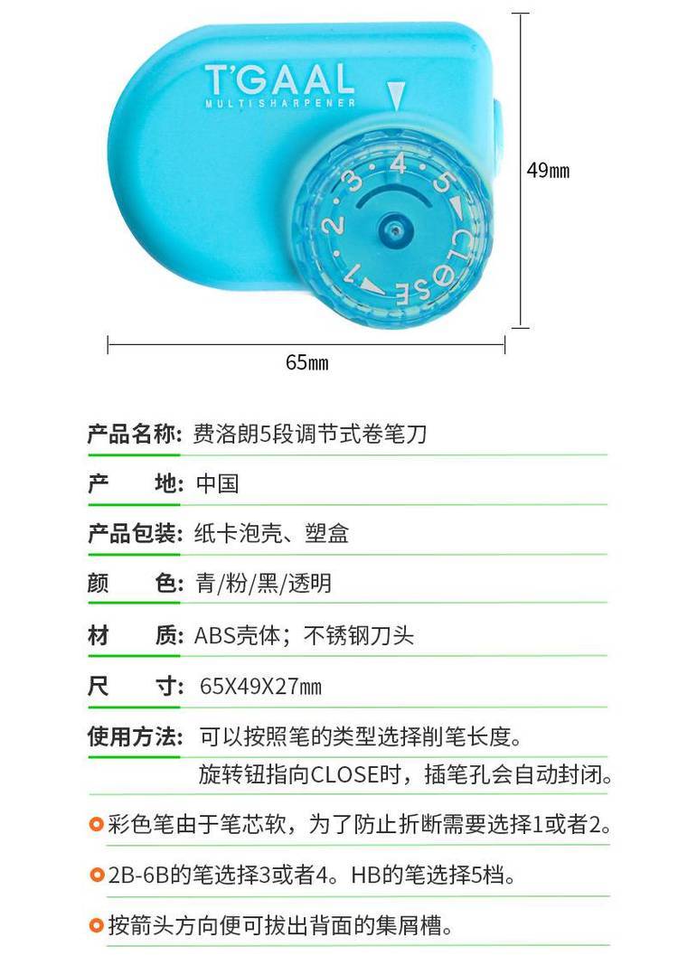 Filolang霹雳马彩铅卷笔刀眼线眉笔卷笔器素描炭笔削笔器TGAAL五档粗细笔尖转笔刀美术生专用铅笔削笔刀