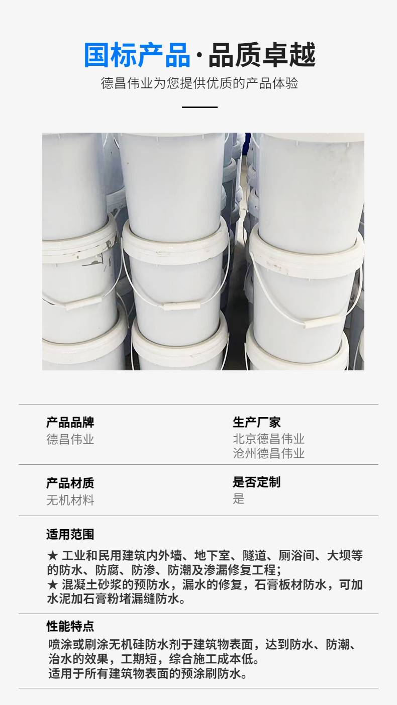 无机硅防水剂 墙地面防水涂料 喷涂型建筑表面防水材料
