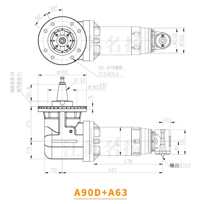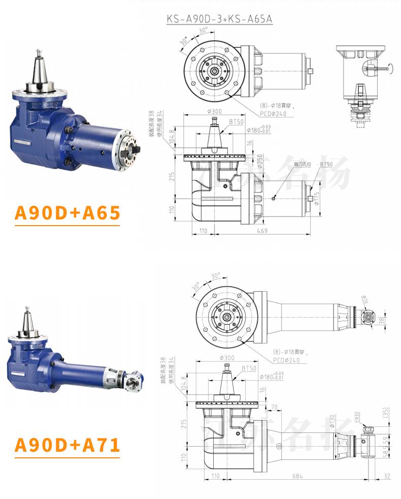 非标加长铣头 KS-A90D+A65 可定制头 立式机床附件 MEYA原装 名扬昱洁