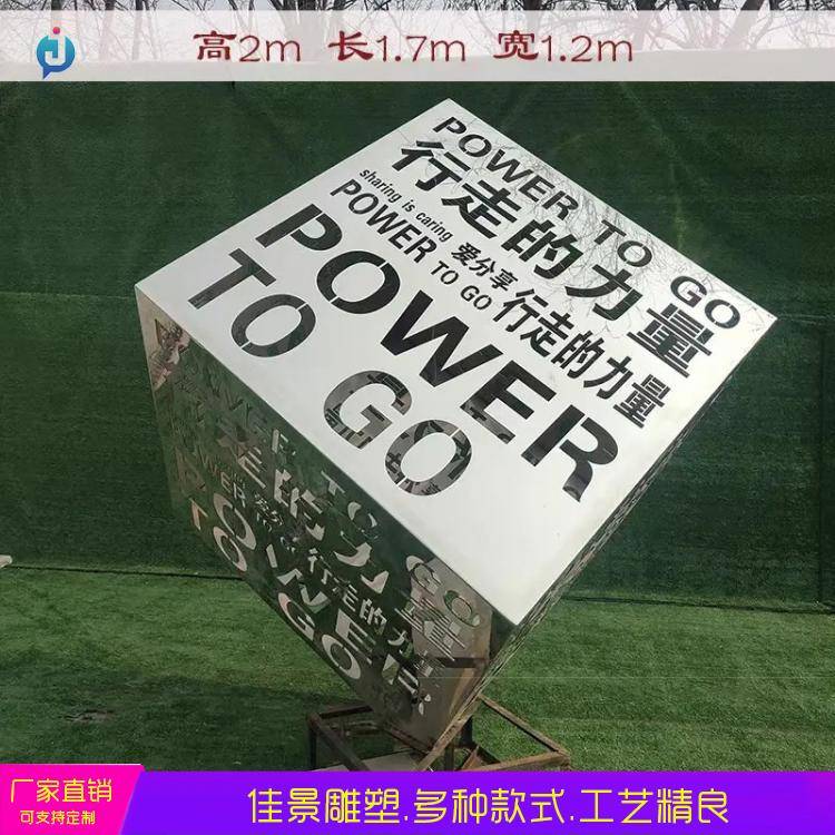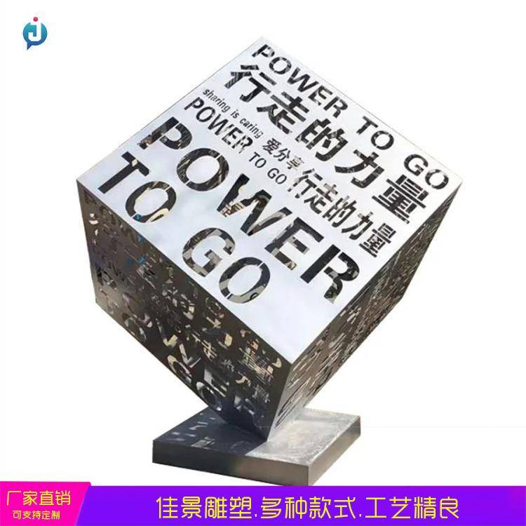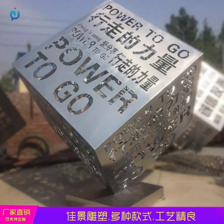 大型不锈钢镂空发光魔方 创意立方体 户外广场小品 金属创意摆件 佳景