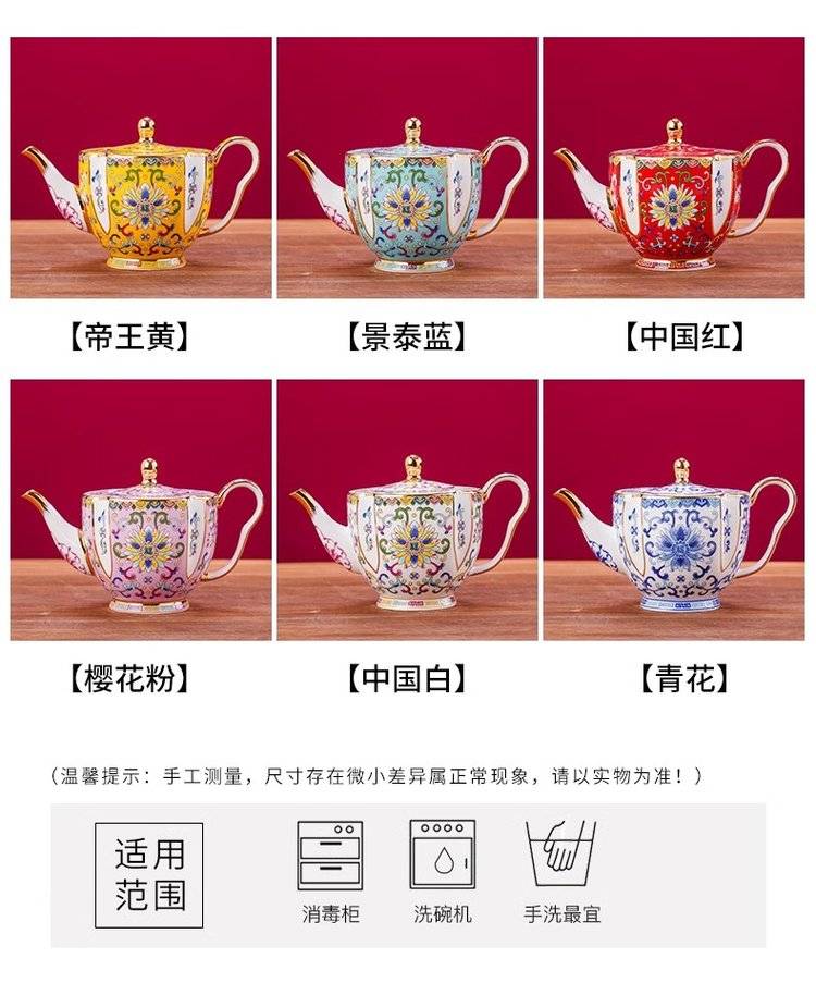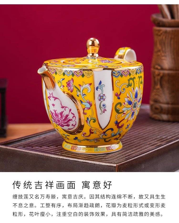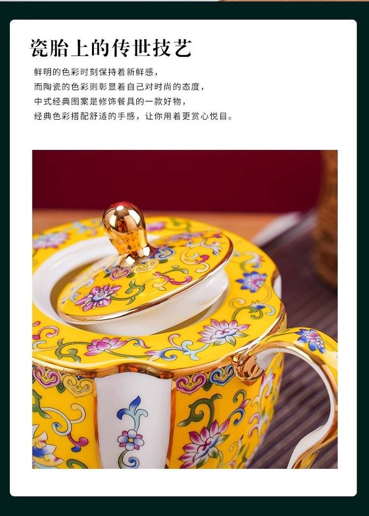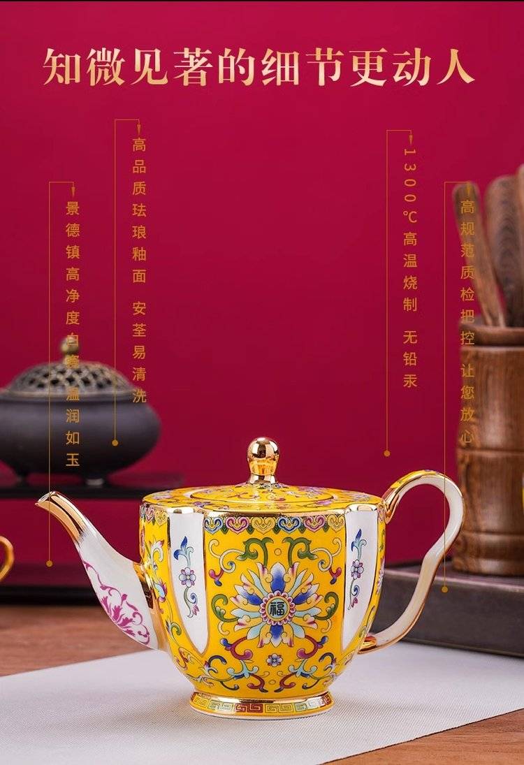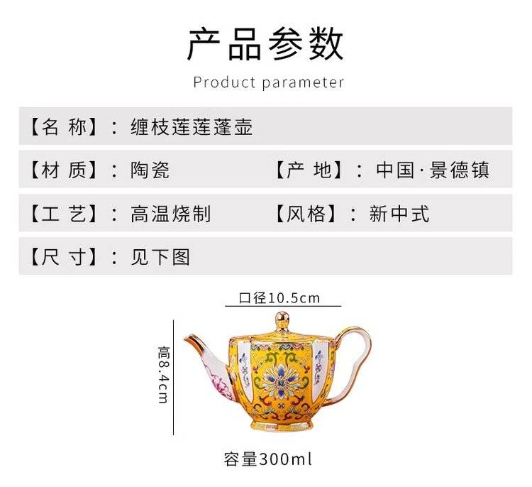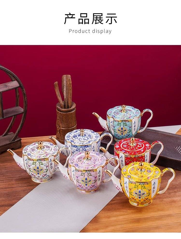 合元陶瓷 咖啡壶 描金珐琅彩缠枝福莲蓬茶壶 宫廷风家用凉水壶