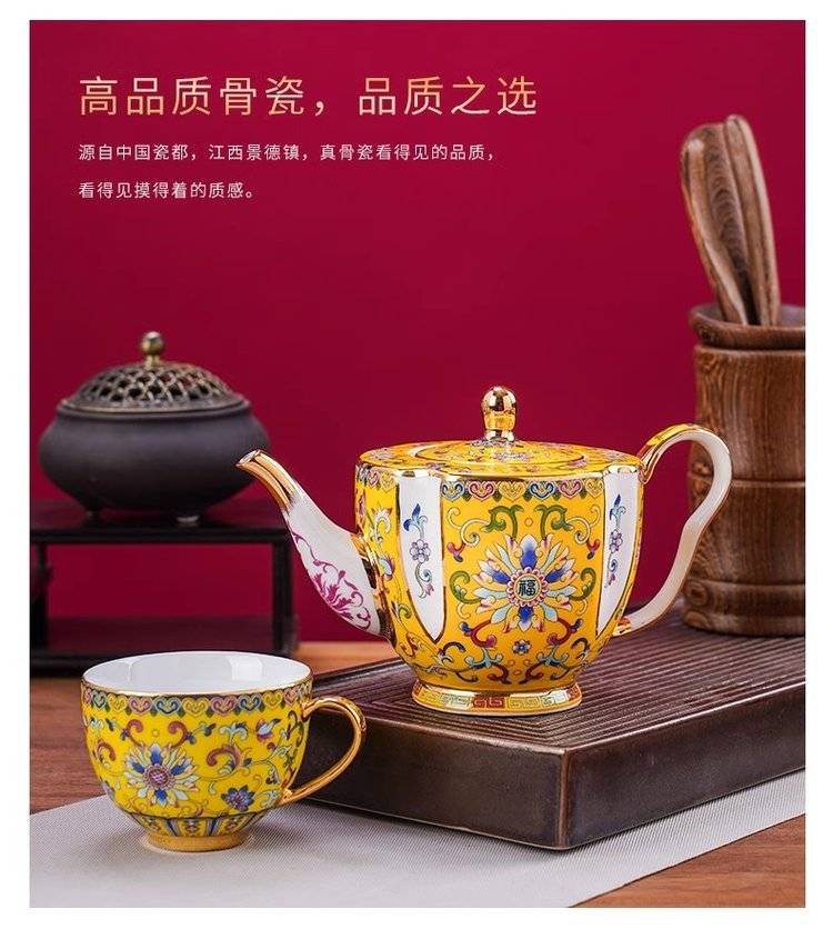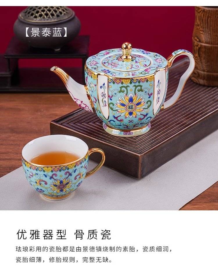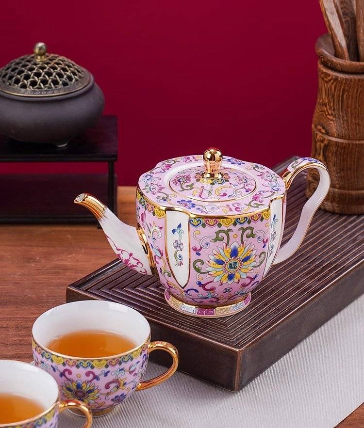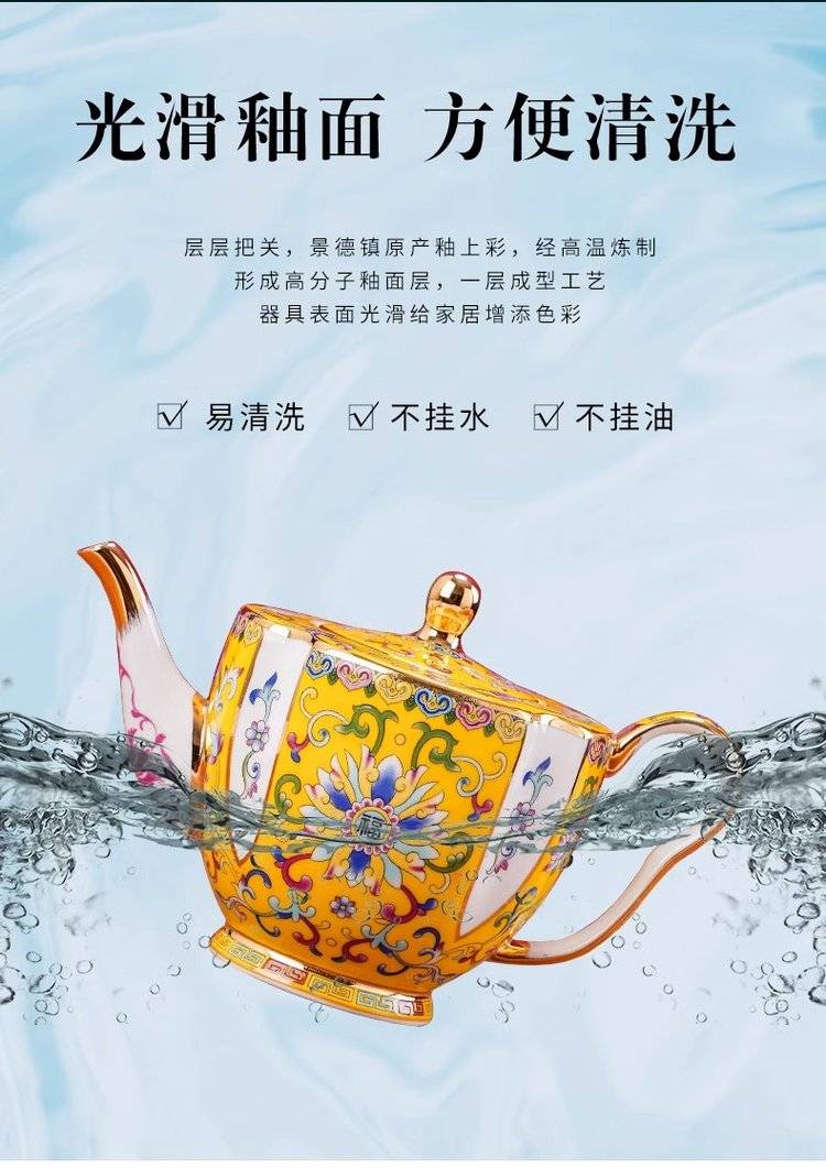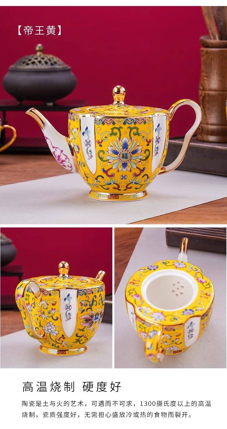 合元陶瓷 咖啡壶 描金珐琅彩缠枝福莲蓬茶壶 宫廷风家用凉水壶