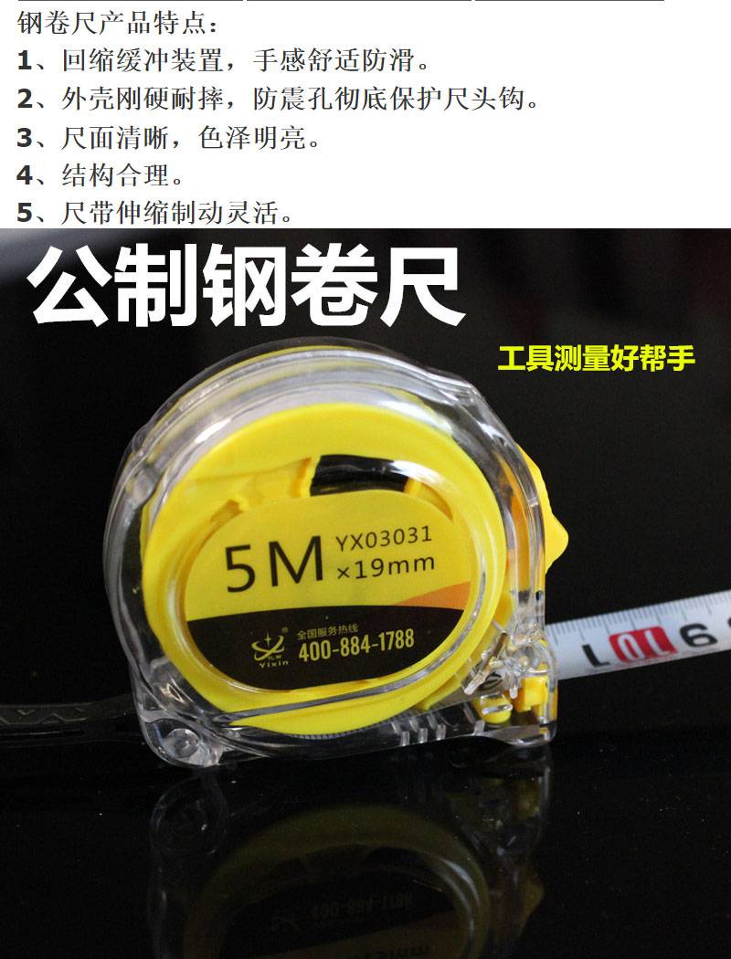 批发测量卷尺黄色钢卷尺测量工具尺子防震量尺