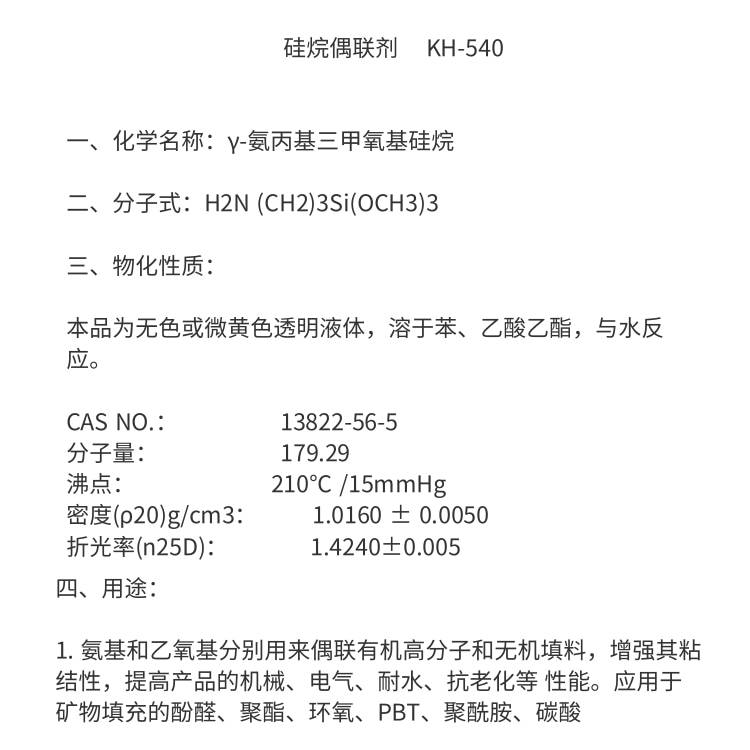γ-氨丙基三甲氧基硅烷 KH-540 表面处理 增强聚合物性能 试剂100g