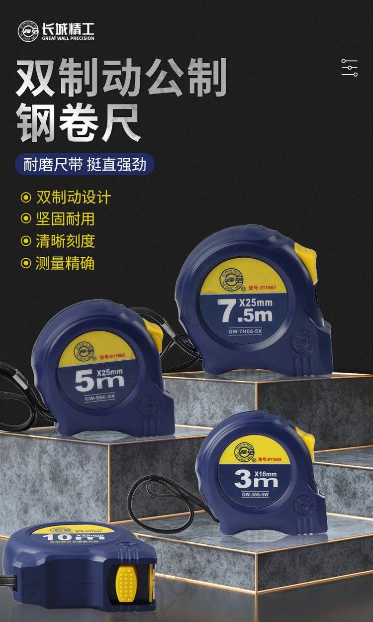 高精度钢卷尺5米加厚3米7.5米10米耐磨防摔防水防锈木工测量尺子