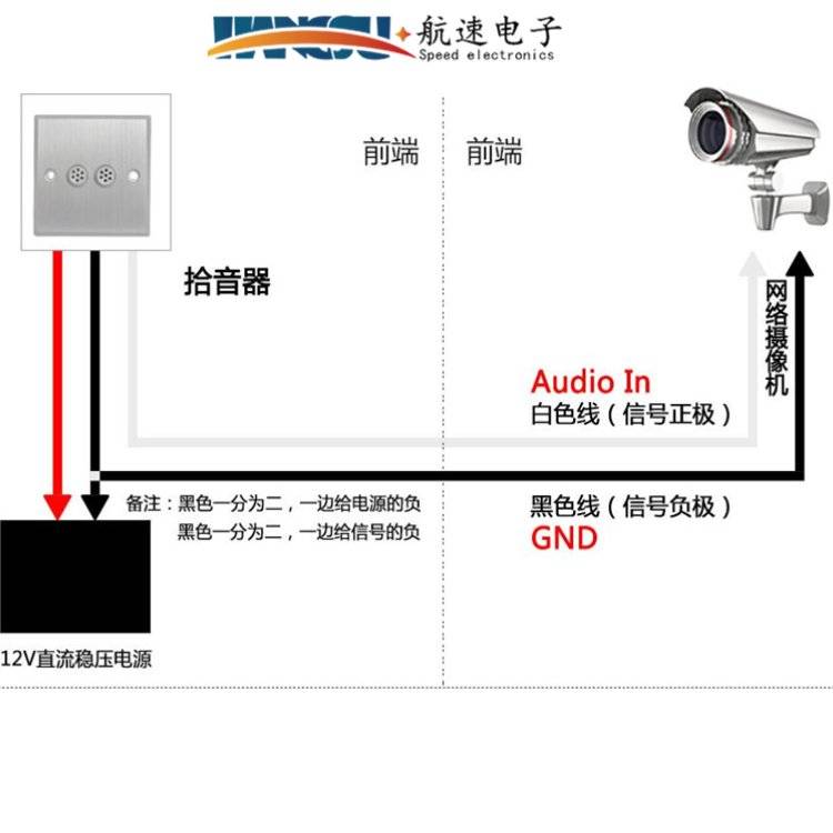 航速/低噪音监控拾音器 摄像机录音高保真拾音头降噪音频监听器