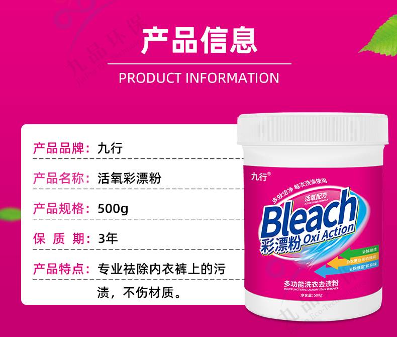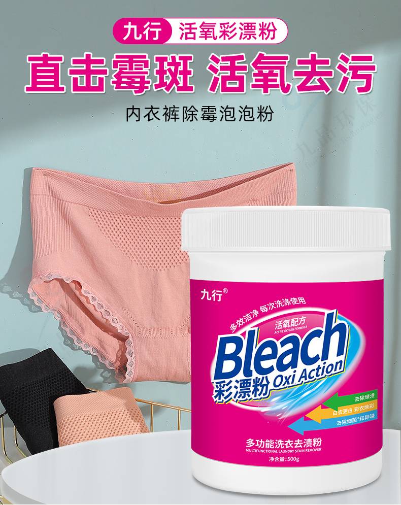 九行活氧彩漂剂内衣裤专用清洁去黄去污渍血渍深层清洁除霉去污
