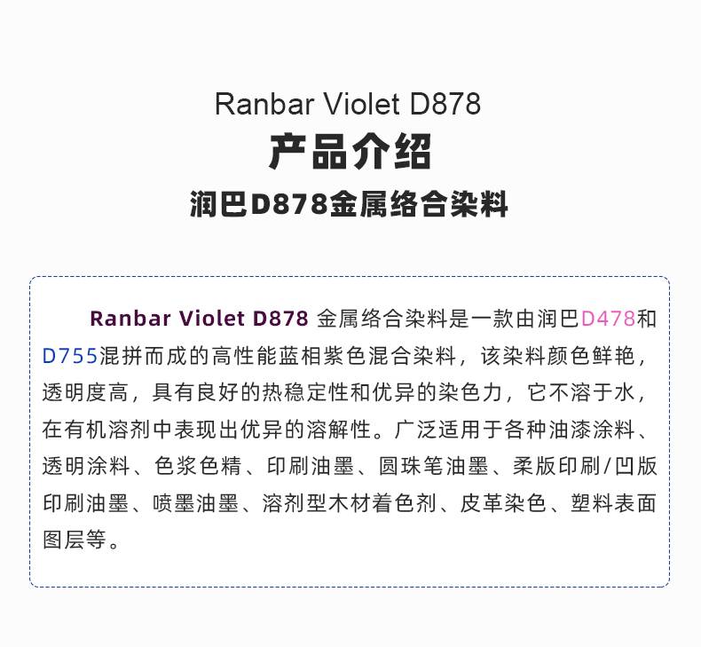 润巴涂料油墨用紫色金属络合染料Ranbar D878高性能蓝相紫混合染料