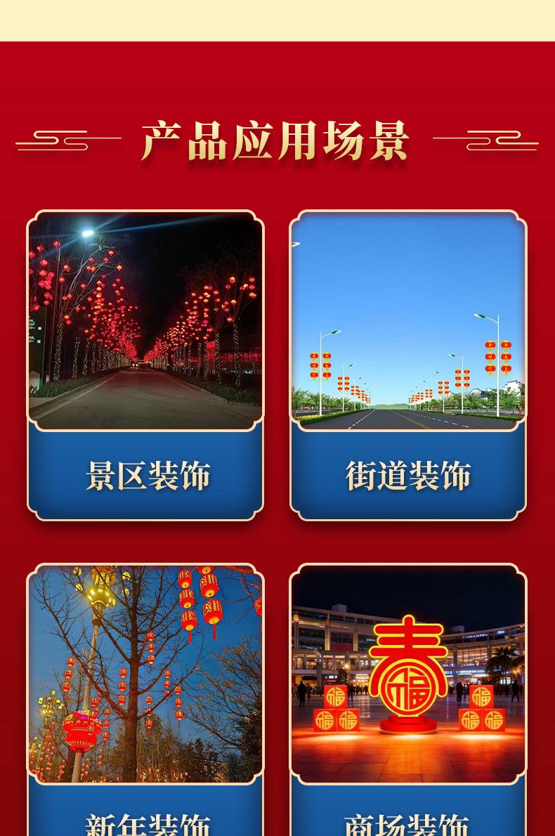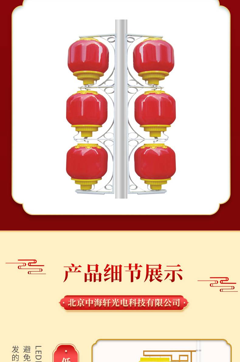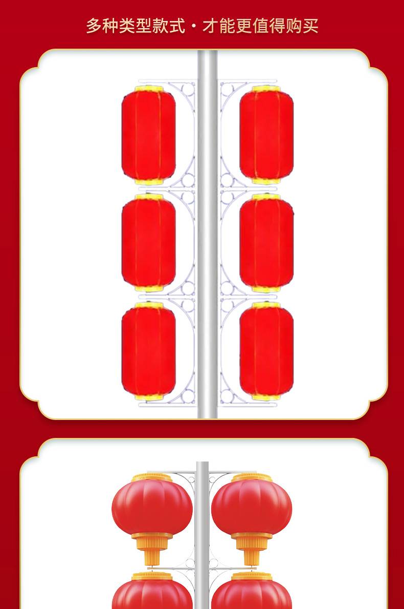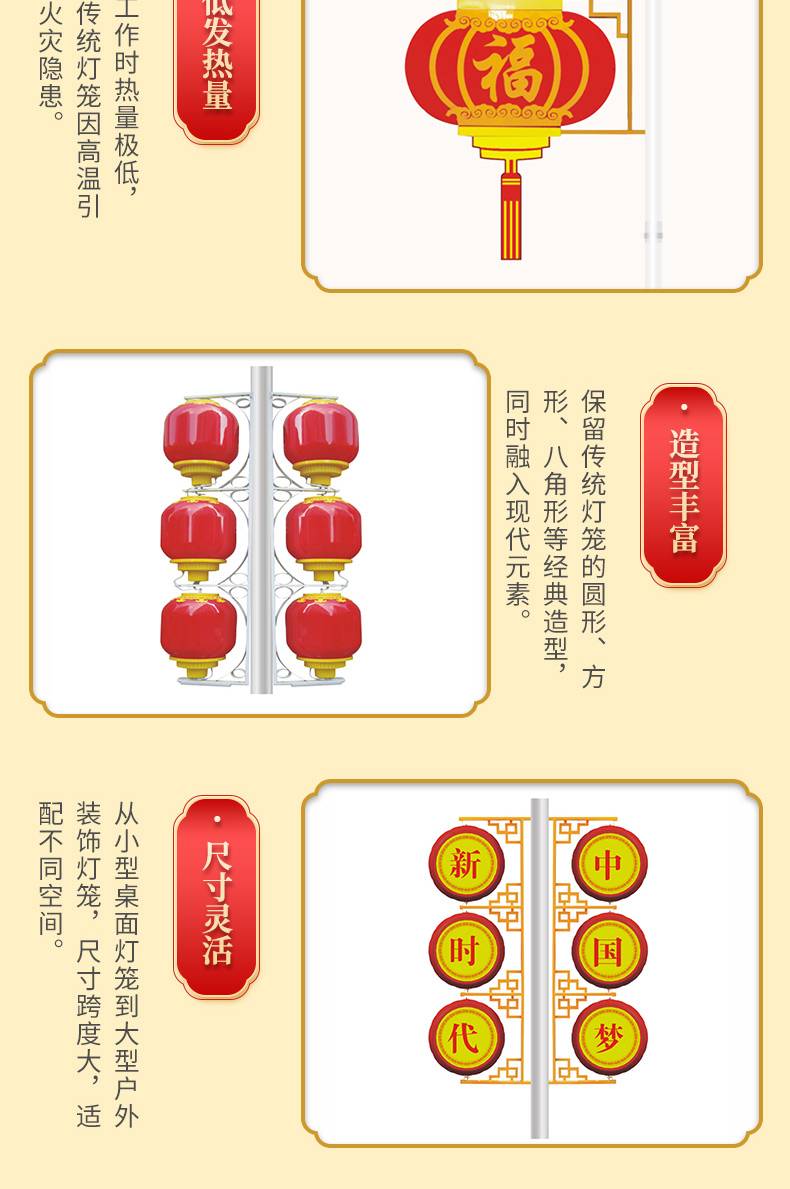 春节路灯杆装饰广告灯LED中国结发光连串灯笼定制展示内容设计