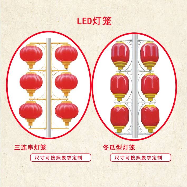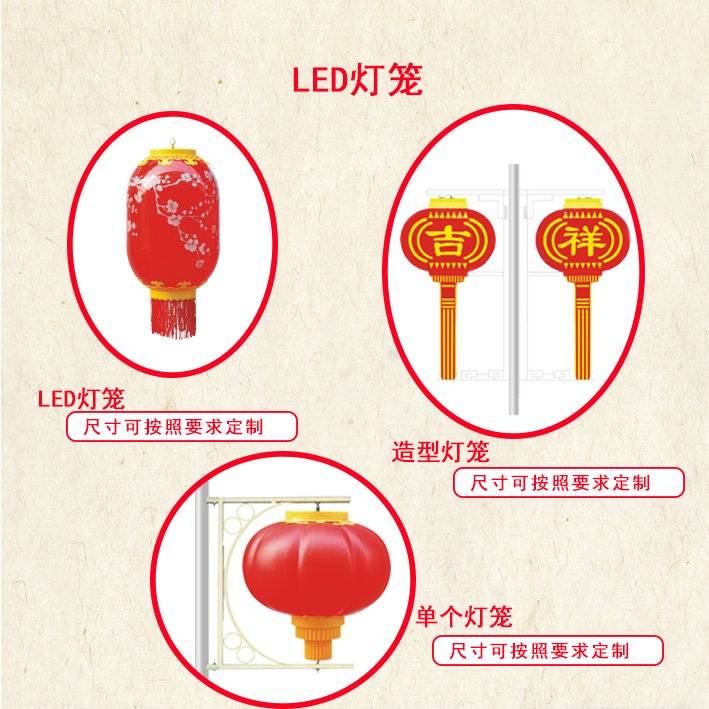 春节路灯杆装饰广告灯LED中国结发光连串灯笼定制展示内容设计