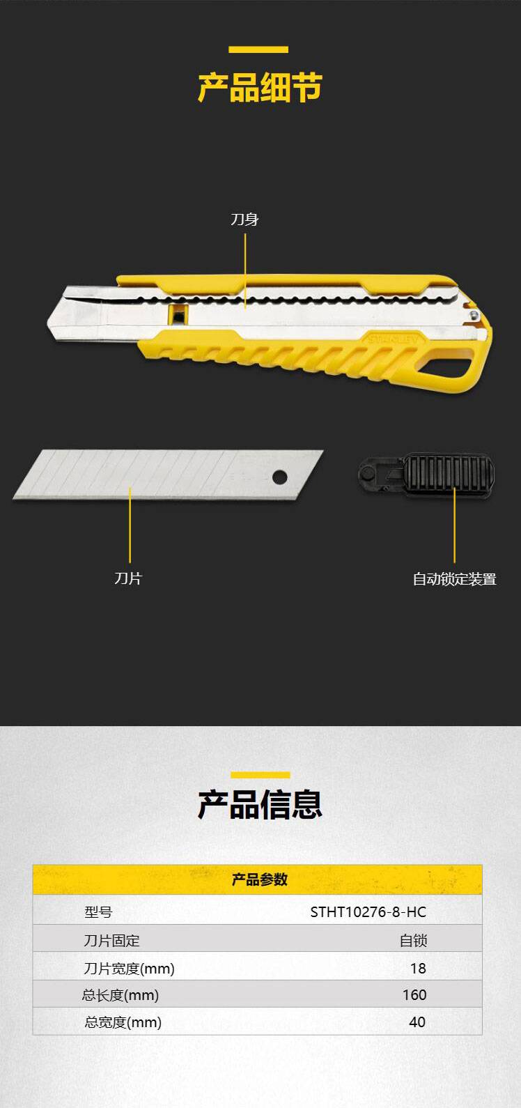 史丹利STHT10276-8-HC大号自锁美工刀 耐用款 原装进口 总代理
