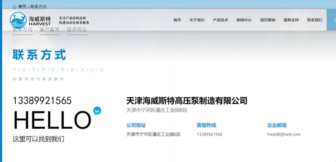欢迎访问天津海威斯特高压泵制造有限公司