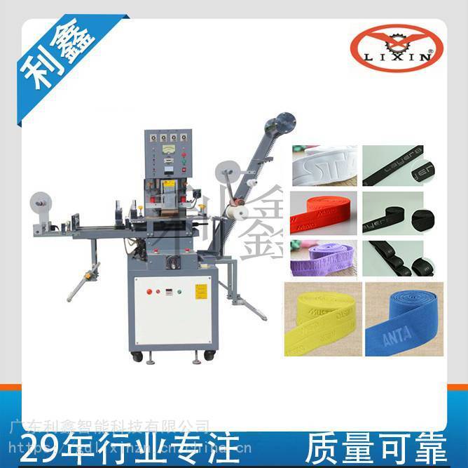 全自动织带压字机,也叫全自动压纹机主要用于尼龙带、PP带、包边带、箱包带、安全带、织带、内衣肩带、弹力带、服装商标等产品表面LOGO压痕加工,同时此机还具备烫金的功能。带有自动进带系统和收带系统,独立稳定的张力控制系统,可实现弹力织带、无弹力织带的自动张力调节,针对不同材质的带子,此机具有热压和高频自动切换功能,保证产品不会损坏,确保达到洗水不反弹的效果。