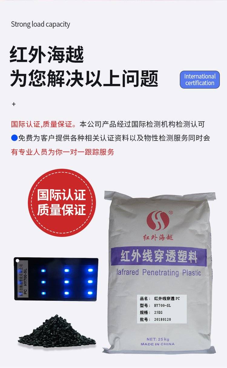 红外线穿透 黑色PC 光学级650nm指示灯专用塑胶原料HY650-ZG