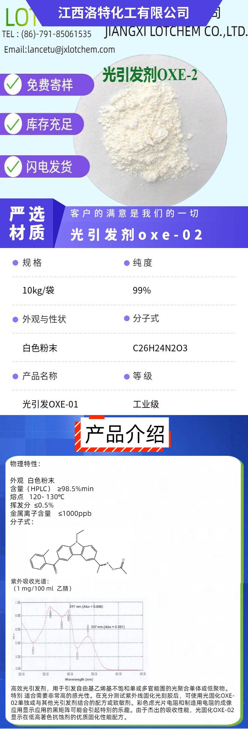 光引发剂OXE-02 肟酯类固材料 CAS#478556-66-0 工业级 合成材料助剂